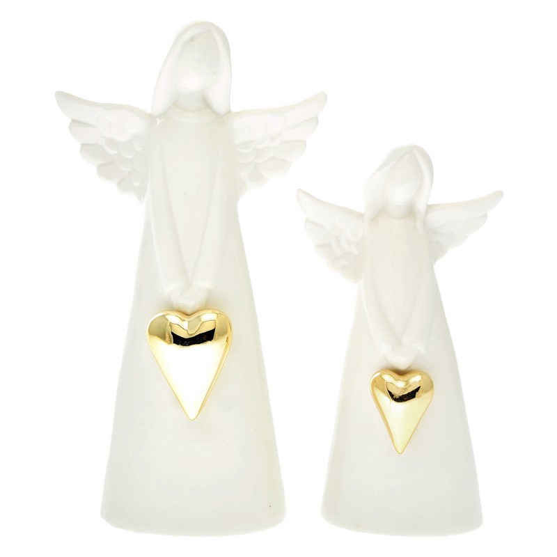 Anděl Natu se zlatým srdcem, 11x6x19 cm, polyresin
