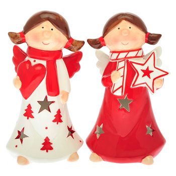 Anděl Red bílý se srdcem a hvězdami, 9x7x15 cm, ke