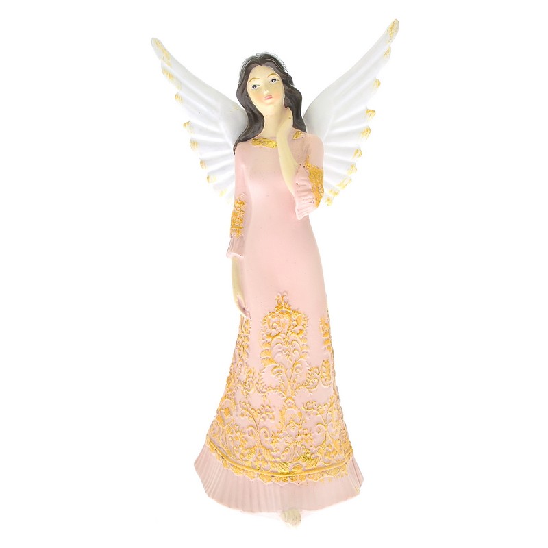 Anděl Roselo zdravící růžový, 7x8x18 cm, polyresin