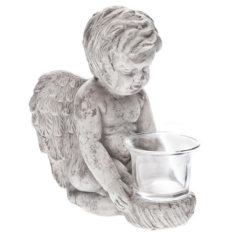 Anděl svícen na čaj. sv., 12x16x19 cm, beton