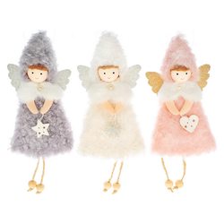 Anděl Plys závěsný se srdcem a hvězdou, mix barev,